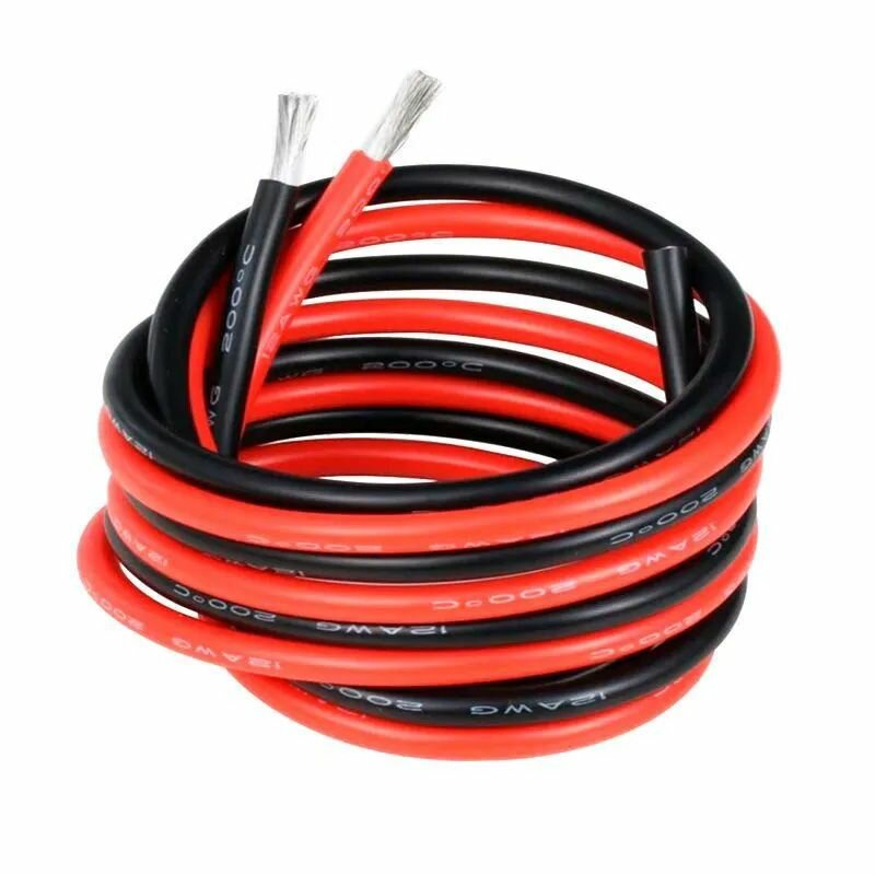 Провод 12AWG (3.33 мм2) в силиконовой изоляции. Луженая медь. 1 метр - черный. 1 метр - красный. 600 ₽