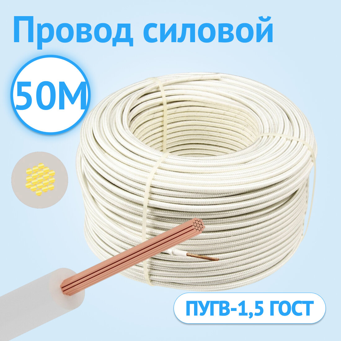 Силовой провод гибкий Кабель ГОСТ ПУГВ 50 одножильный белый ГОСТ 5м. 4 676 ₽