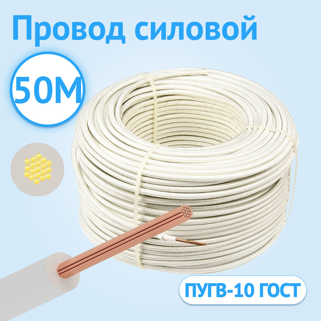 10 цен на Силовой провод гибкий Кабель ГОСТ ПУГВ 10 одножильный белый ГОСТ 50м.
