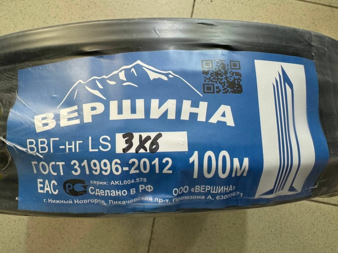 Кабель ВВГ Пнг (А) Ls 3x6, 30 метров 7 356 ₽