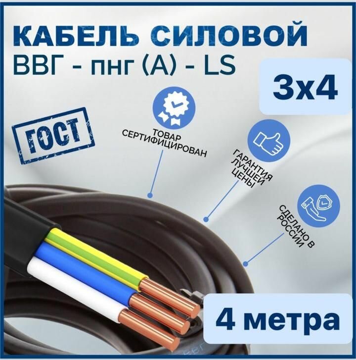 Кабель ВВГ Пнг (A) LS 3х4 4 метра информация: