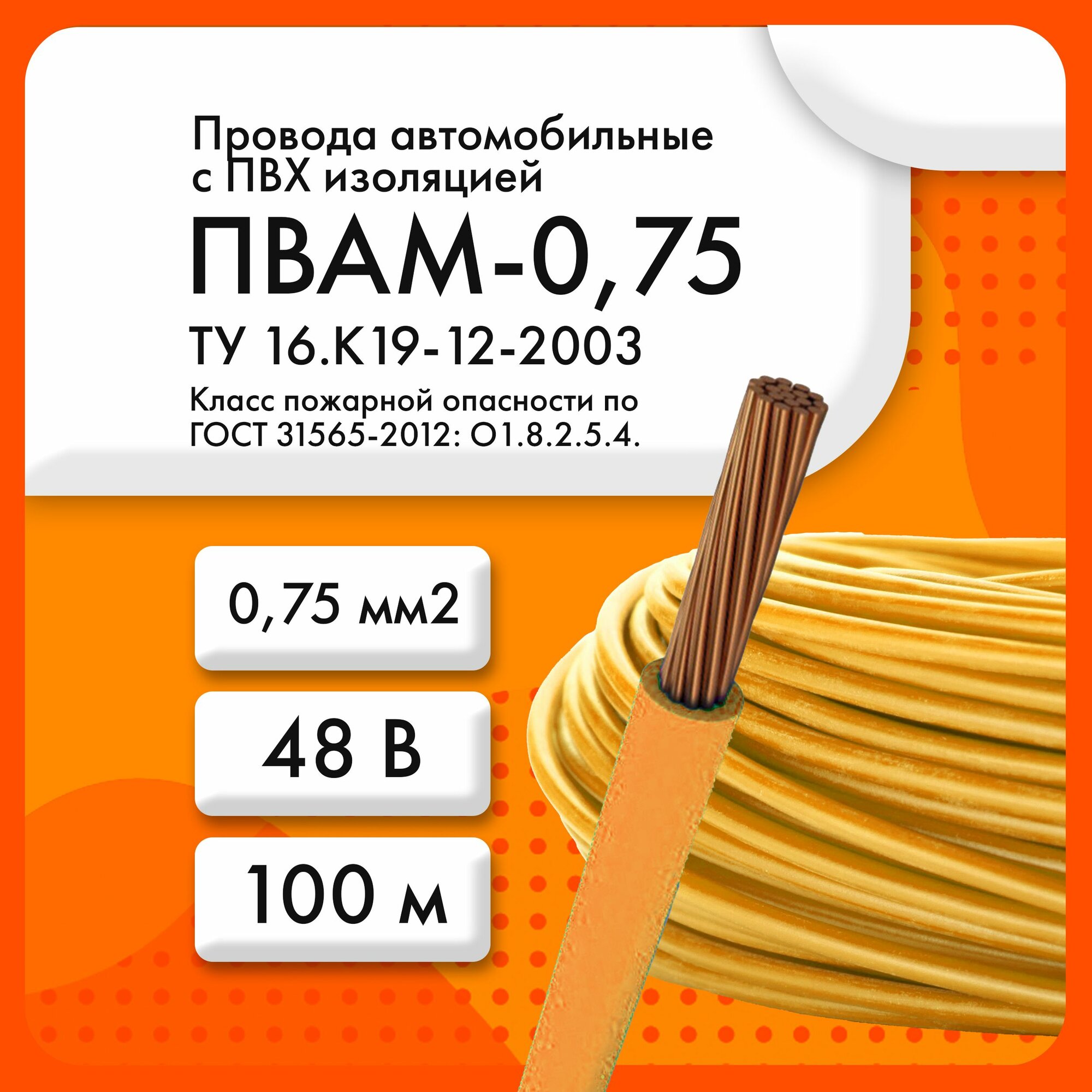ПВАМ-0,75 48 В ТУ 16. К19-12-2003 оранжевый (бухта 100 м) информация: