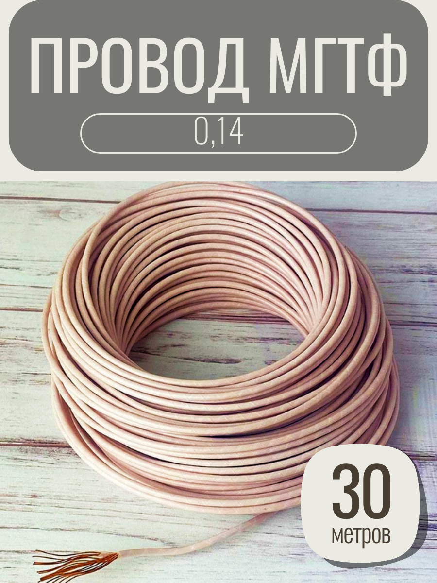 Отзывы на МГТФ 0,14 30 метров, провод монтажный, медный, теплостойкий, изолированный фторопластом.