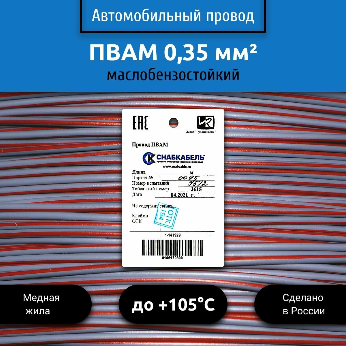 Провод автомобильный пвам (ПГВА) 0,35 (1х0,35) серо/красный 1 м информация: