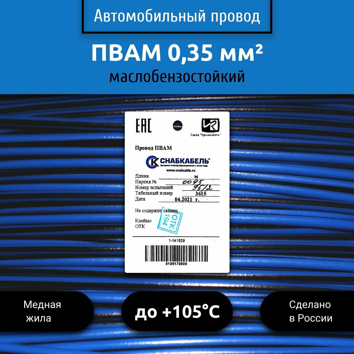 Отзывы на Провод автомобильный пвам (ПГВА) 0,35 (1х0,35) голубо/черный 50м