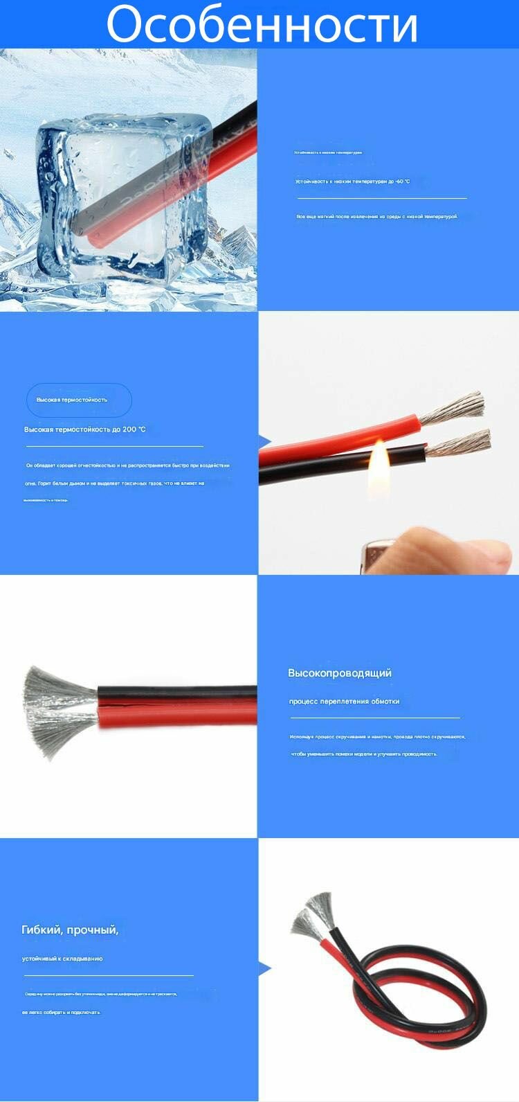 Провод 22 AWG силиконовый двойной черный-красный 5 метров AWG 22 силиконовый информация: