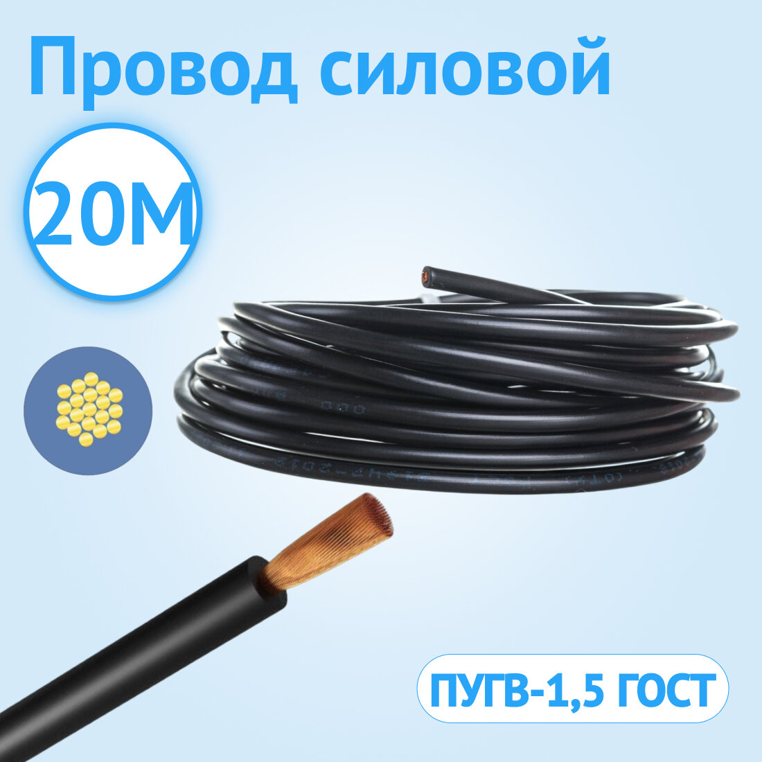 Провод силовой установочный Кабель ГОСТ ПУГВ 1,5 ГОСТ гибкий черный 20м информация: