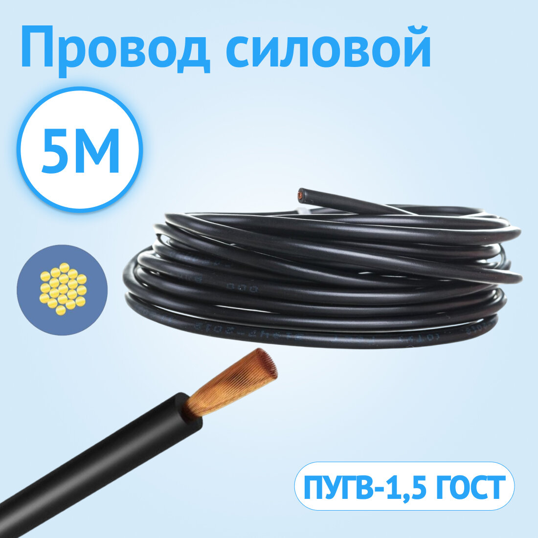 Провод силовой установочный Кабель ГОСТ ПУГВ 1,5 ГОСТ гибкий черный 5м информация: