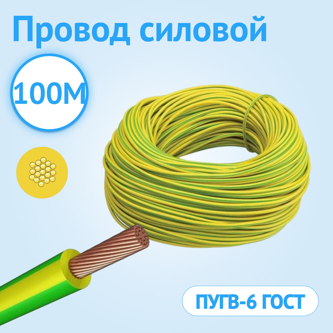 10 цен на Провод силовой установочный Кабель ГОСТ ПУГВ 6 ГОСТ гибкий желто-зеленый 100 м