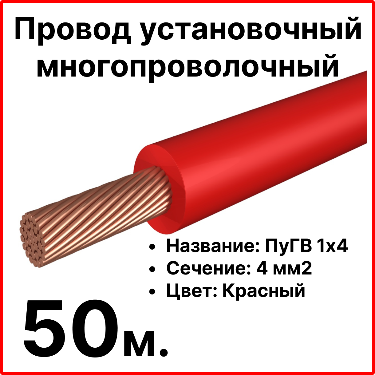 Провод ПУГВ 1x4, красный, 50 метров информация: