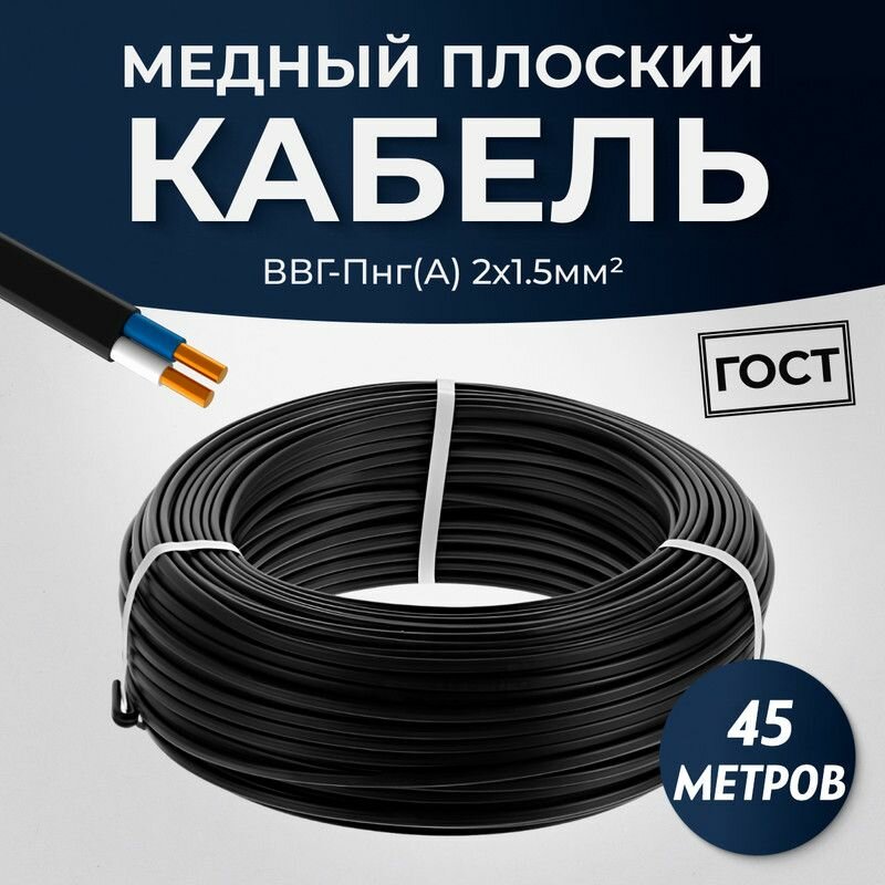 10 цен на Силовой кабель ВВГ-Пнг(A)-LS плоский 2 x 1.5 мм ГОСТ, 45 метров