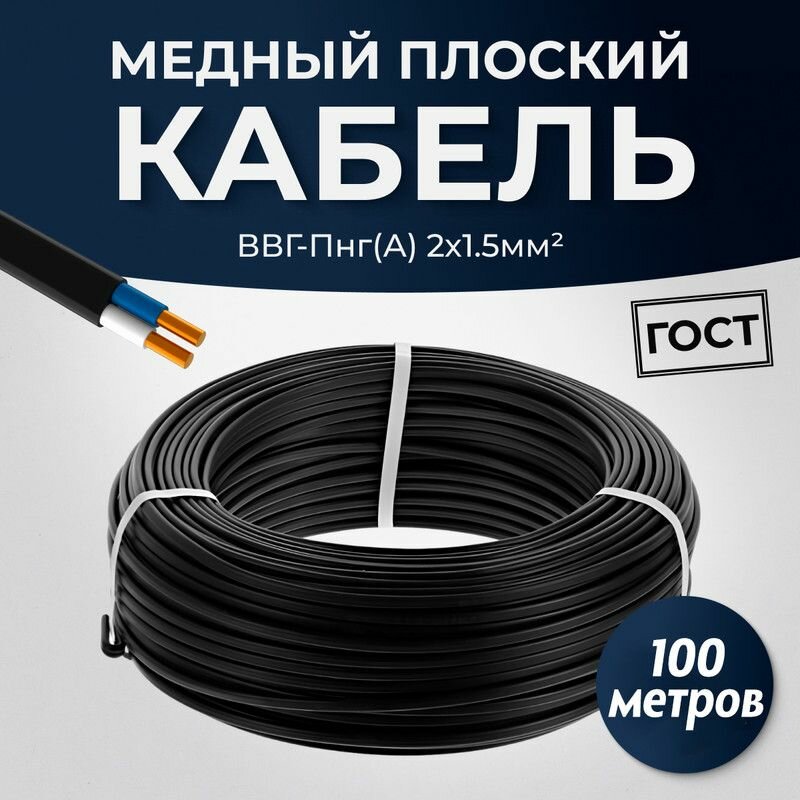 10 цен на Силовой кабель ВВГ-Пнг(A)-LS плоский 2 x 1.5 мм ГОСТ, 100 метров