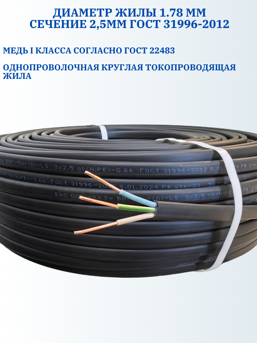 Отзывы на Кабель силовой ВВГ П нг LS 3х2,5-50, Калужский кабельный завод