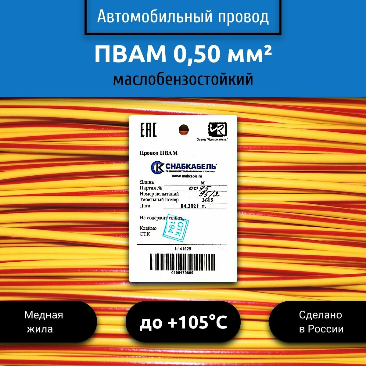 Отзывы на Провод автомобильный пвам (ПГВА) 0,50 (1х0,50) желто/красный 30м