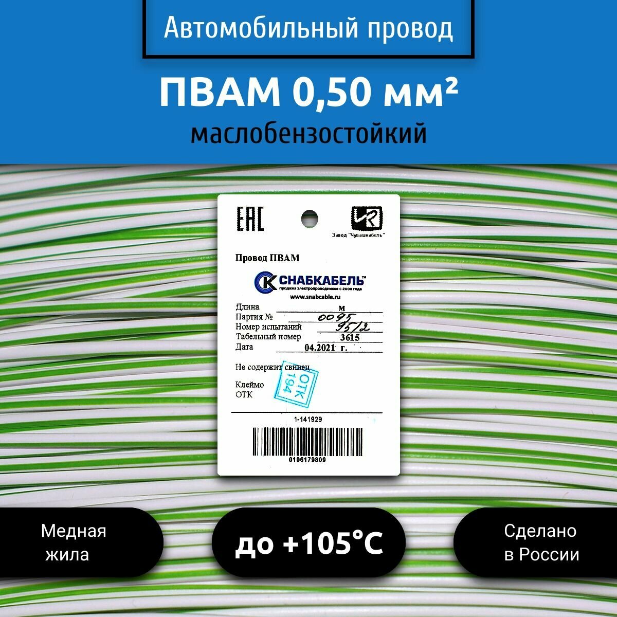 Провод автомобильный пвам (ПГВА) 0,50 (1х0,50) бело/зеленый 30 м информация:
