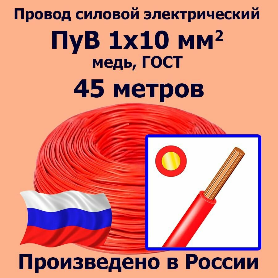 10 цен на Провод силовой электрический ПуВ 1х10 мм2, красный, медь, ГОСТ, 45 метров