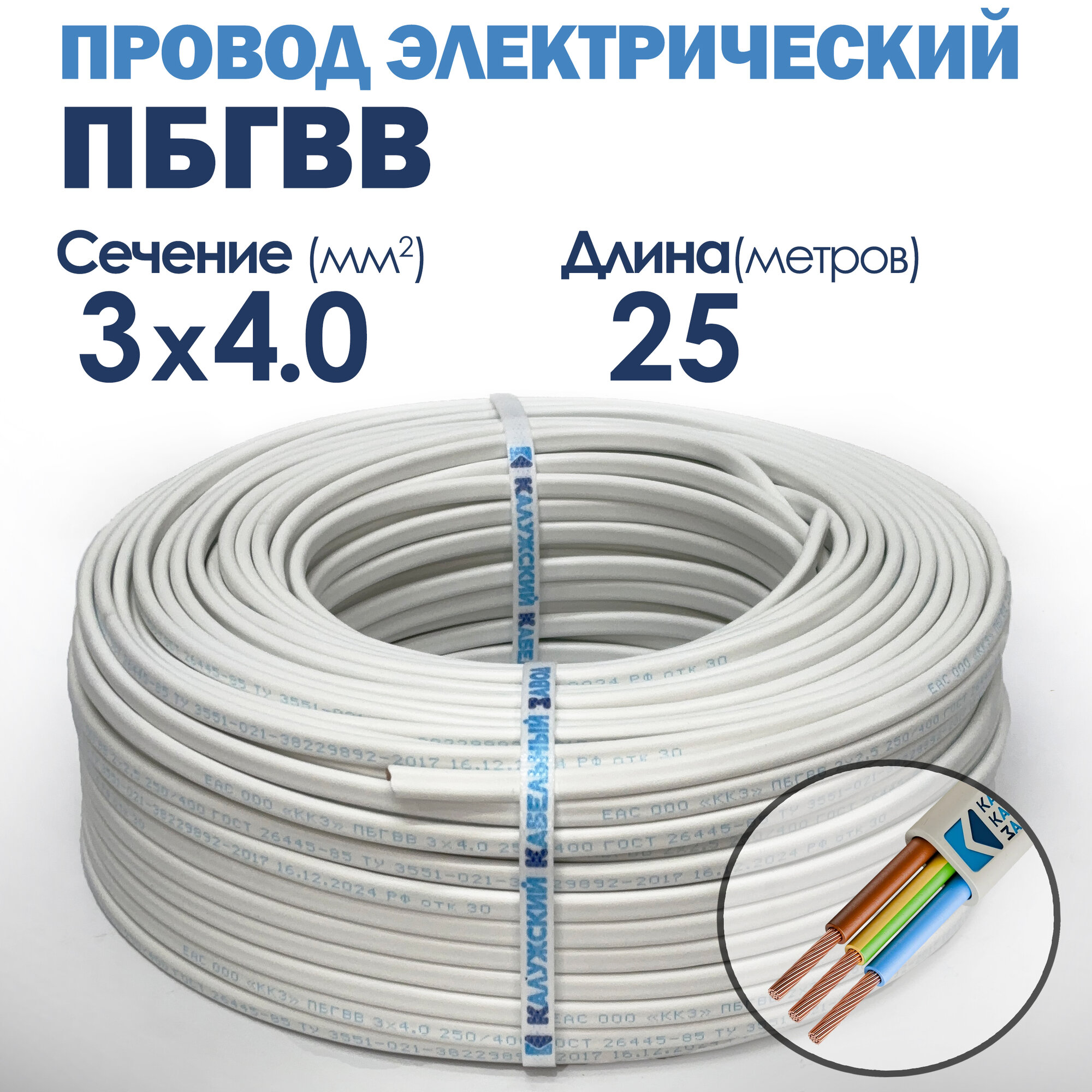 Провод пбгвв 3х4.0 25 метров Калужский кабельный завод ГОСТ информация: