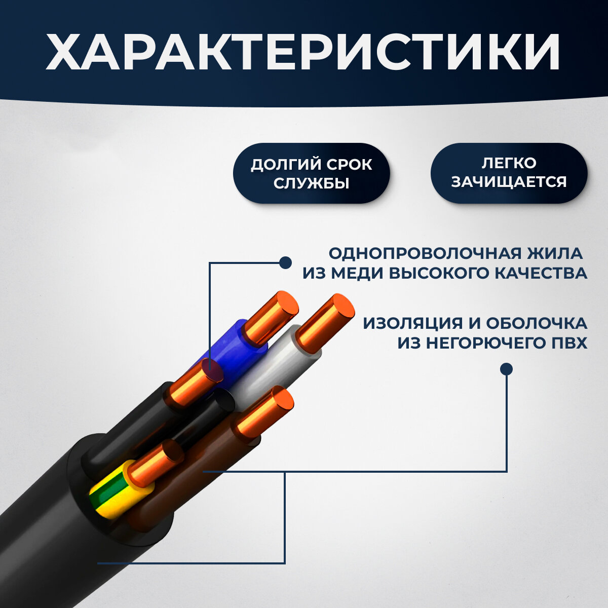 Силовой кабель ВВГнг(A)-LS 5 x 1.5 мм, ТУ, 10 метров 1 351 ₽
