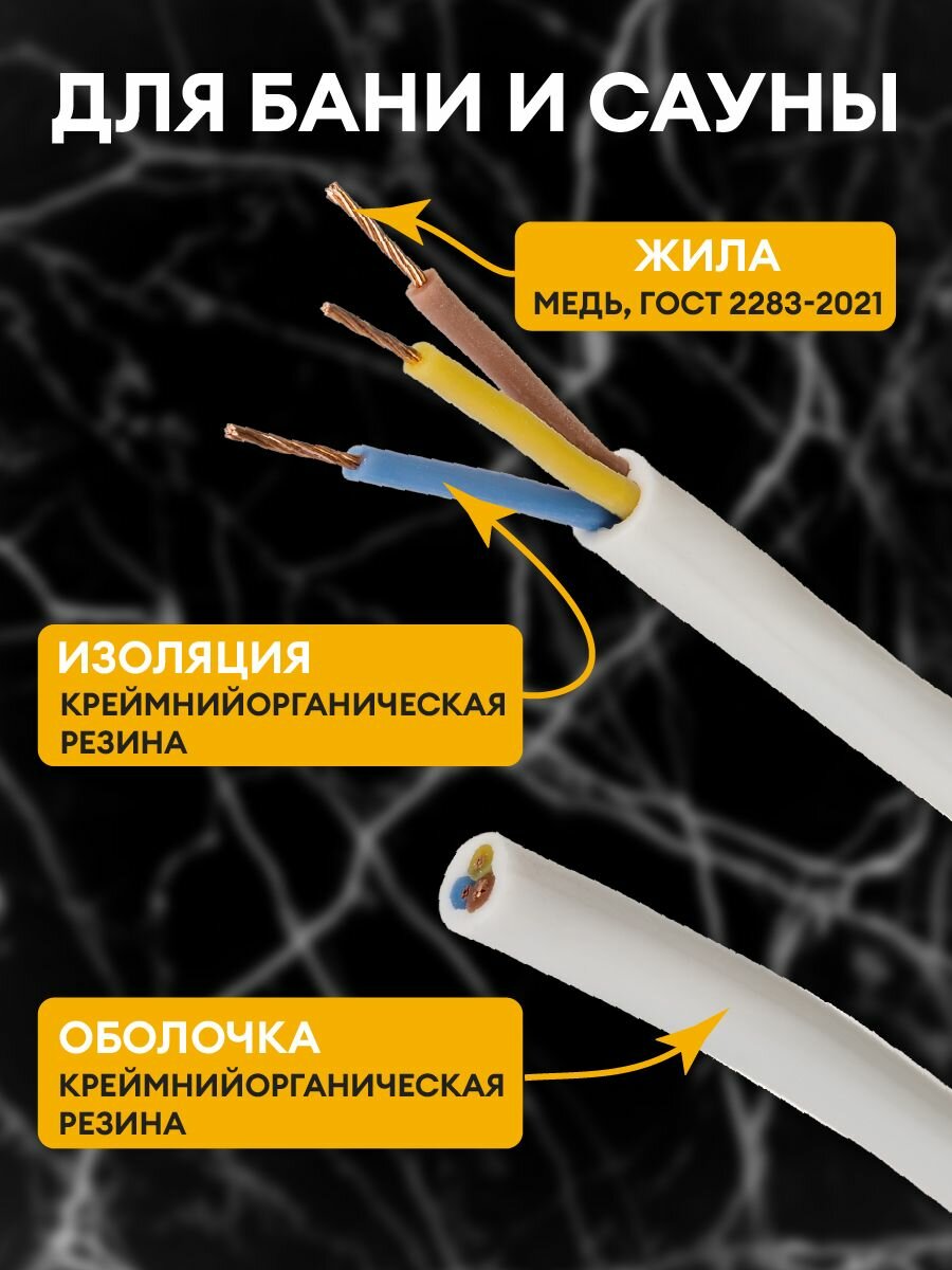 Провод термостойкий пркс 3х0.5 мм2 - 15 метров. Силовой термостойкий соединительный кабель для бань, саун, каминов, печей. 2 067 ₽