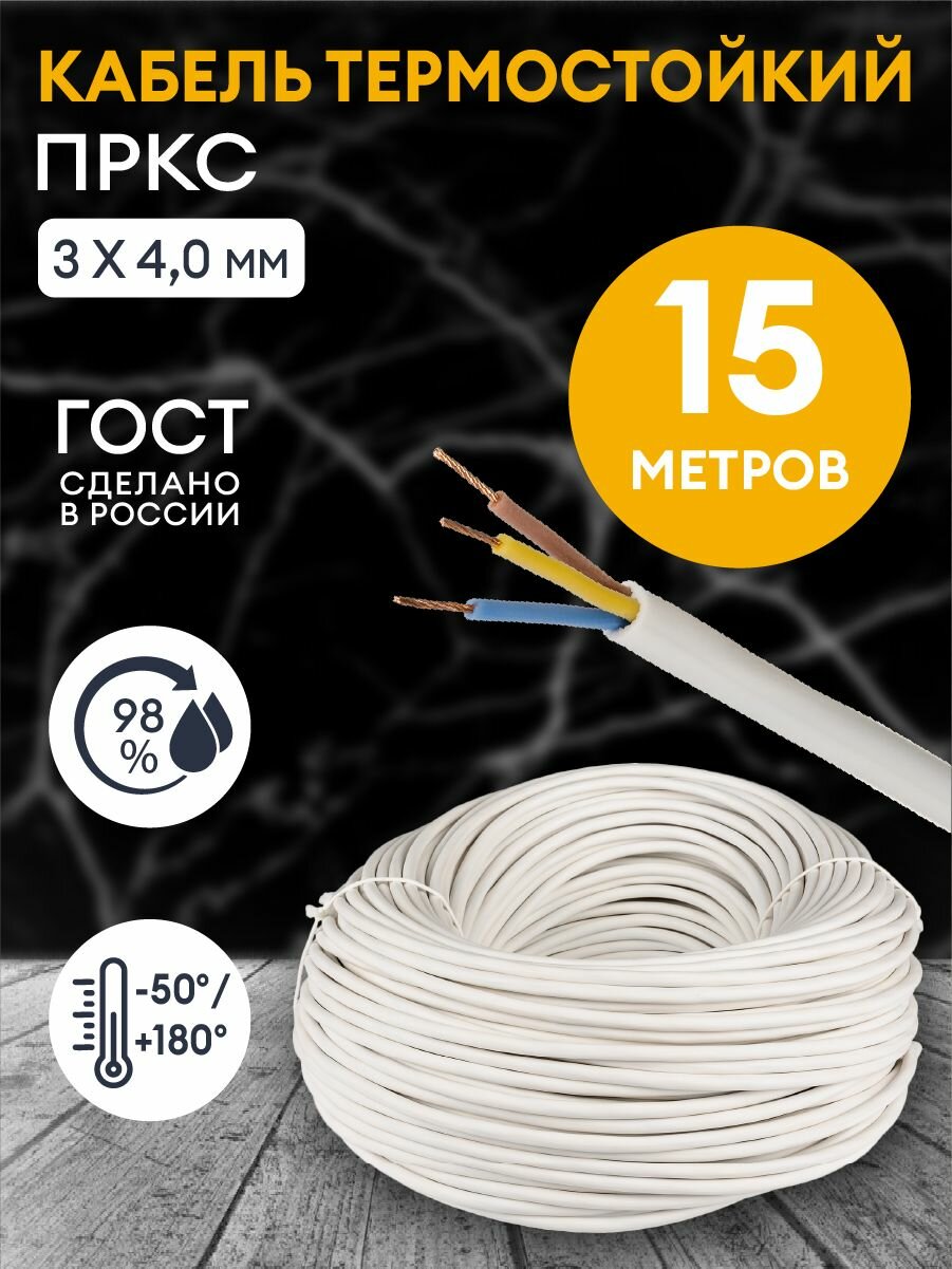 10 цен на Провод термостойкий пркс 3х4.0 мм2 - 15 метров. Силовой термостойкий соединительный кабель для бань, саун, каминов, печей.