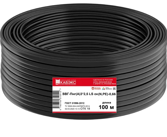 Отзывы на Силовой Кабель ВВГ- Пнг(А) - LS 3х2.5 0.66кВ Kabex ГОСТ бухта 100м