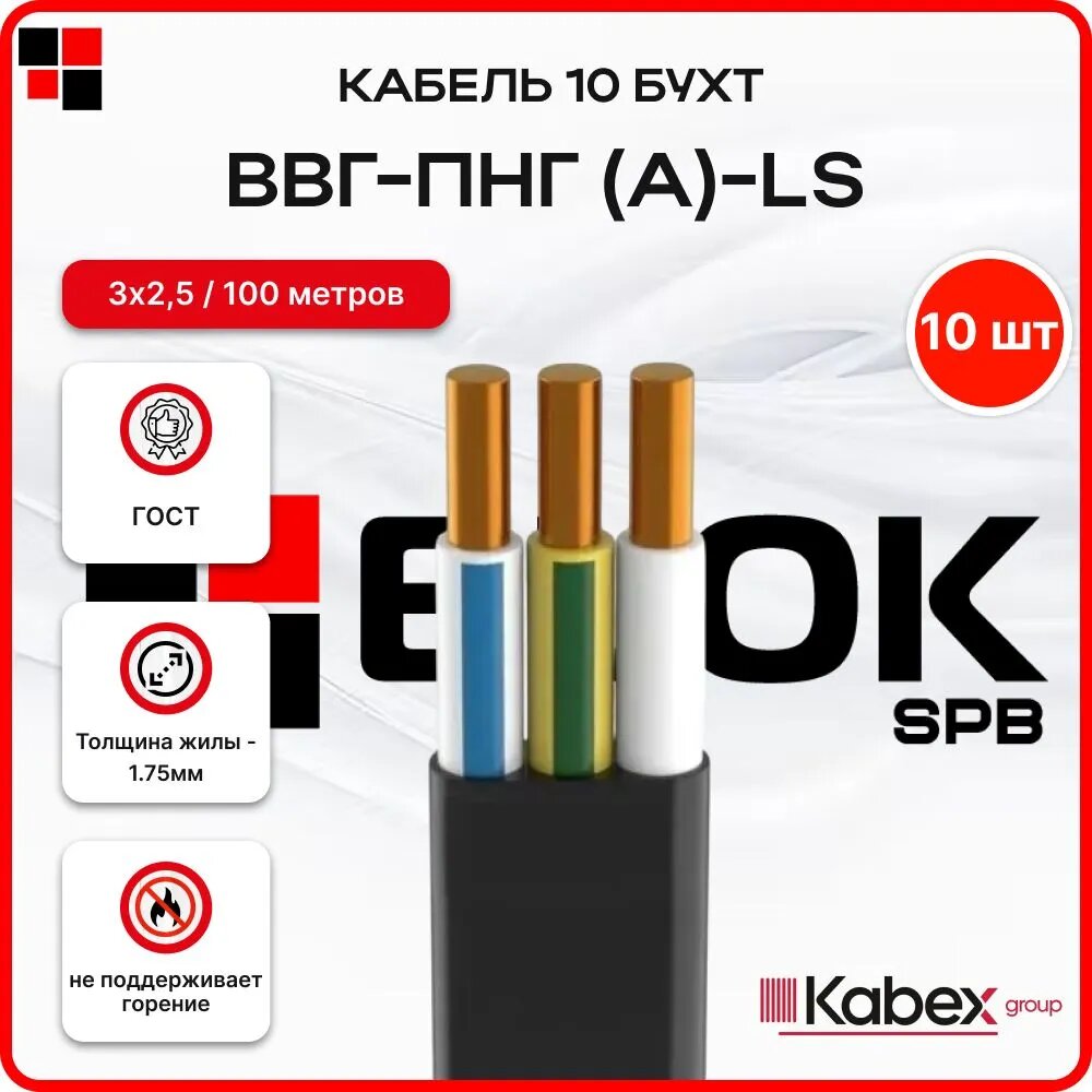 10 цен на Кабель ВВГ- Пнг(А) - LS 3х2.5 0.66кВ Кабэкс ГОСТ бухта 100м - 10шт/уп