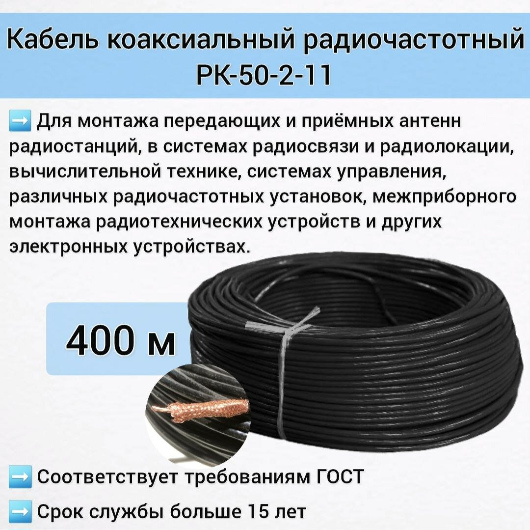 Радиочастотный кабель РК 50-2-11, черный, 400 м информация: