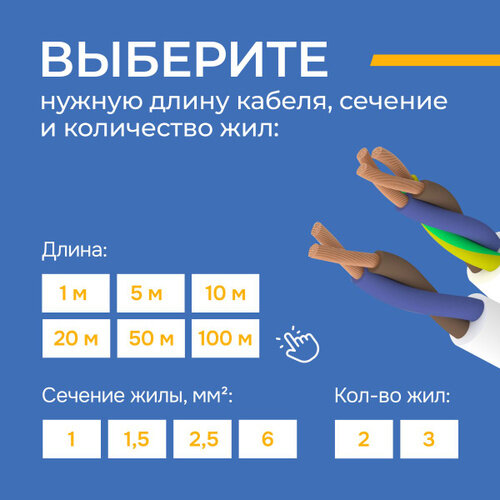 Провод электрический Партнер-Электро ПВС, 2х2,5 мм², бухта 1 метр, белый 342 ₽