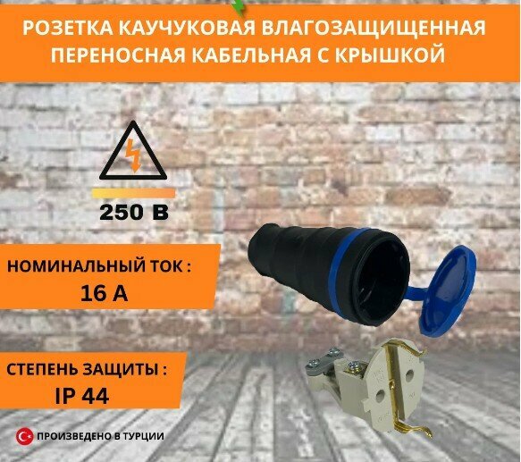 Розетка штепсельная, с заземлением, IP44, глубина 19мм, ширина 30мм, высота 90мм информация: