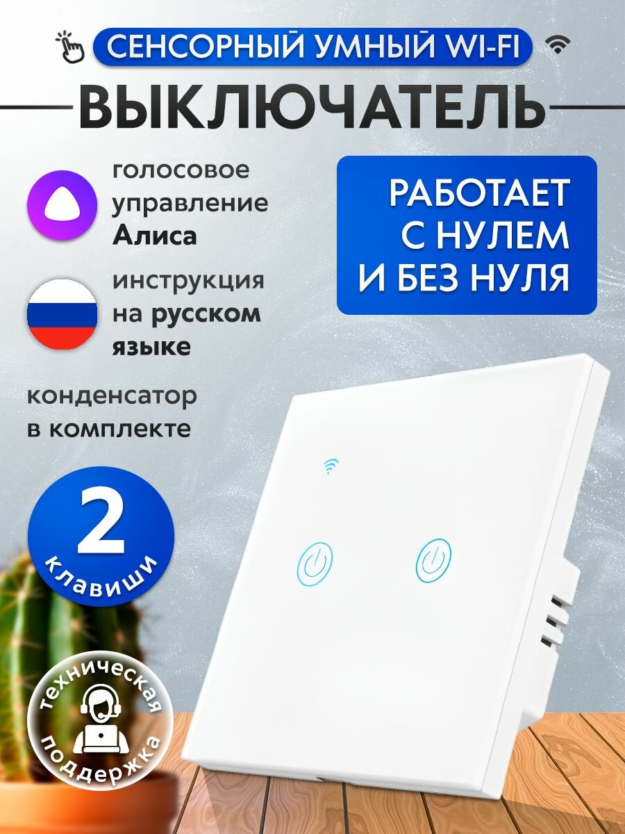 Умный выключатель с Алисой и Wi-Fi двухклавишный сенсорный информация: