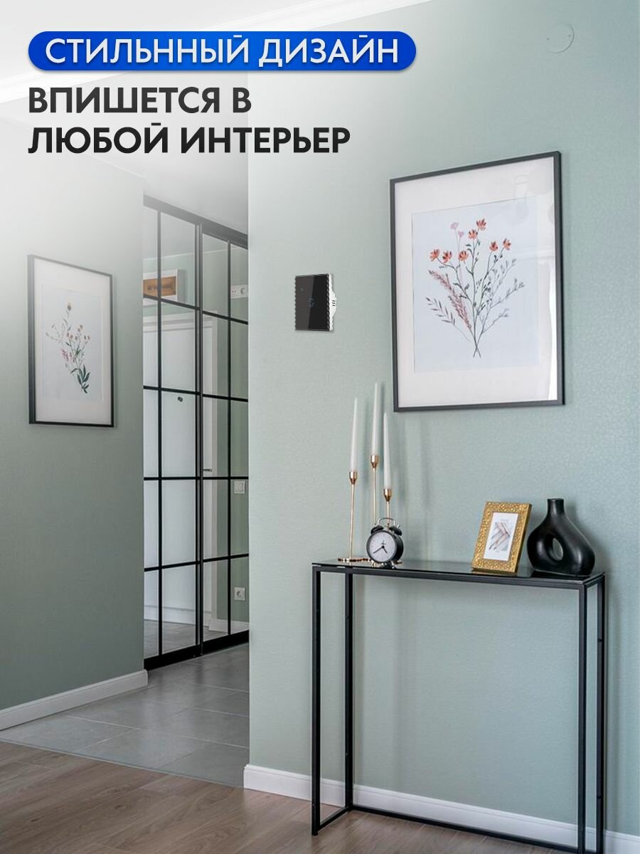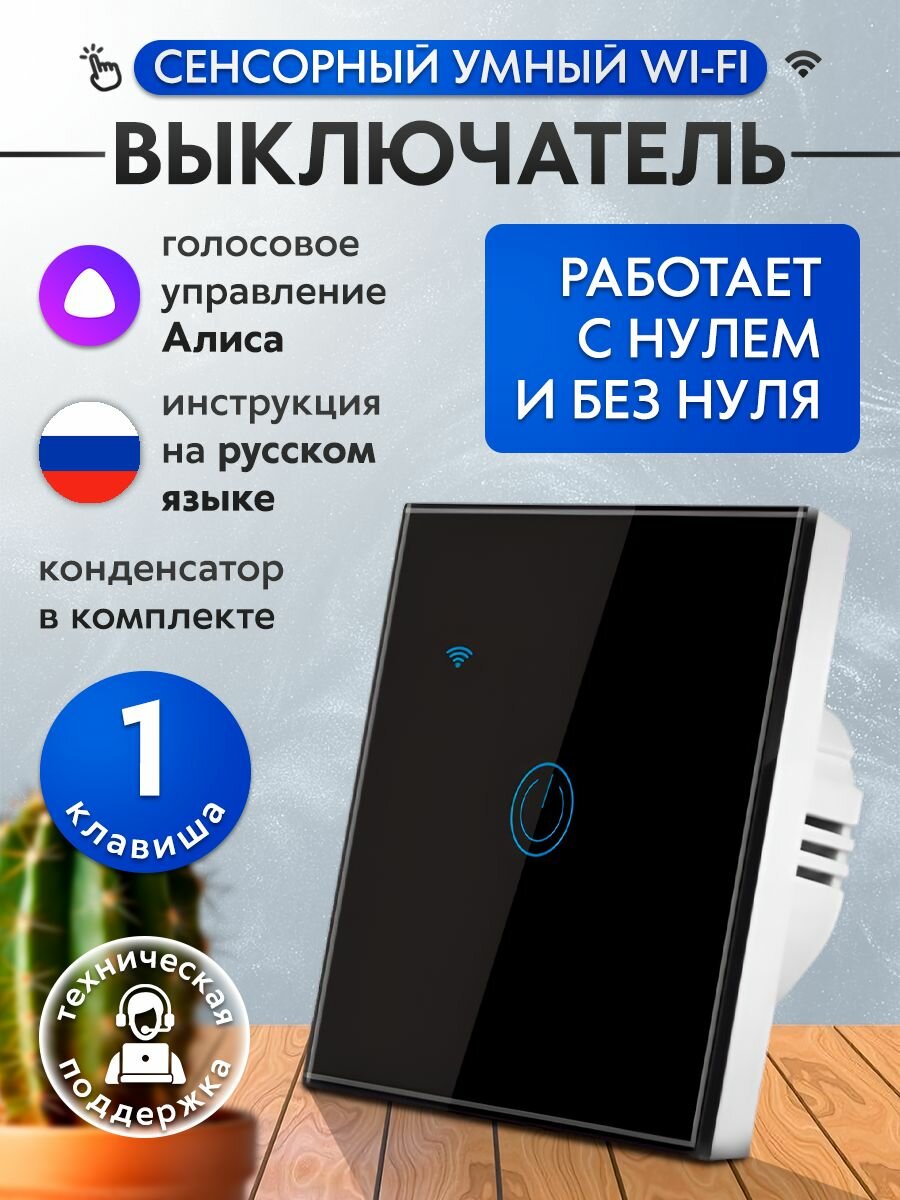 Умный выключатель с Алисой и Wi-Fi одноклавишный черный сенсорный информация: