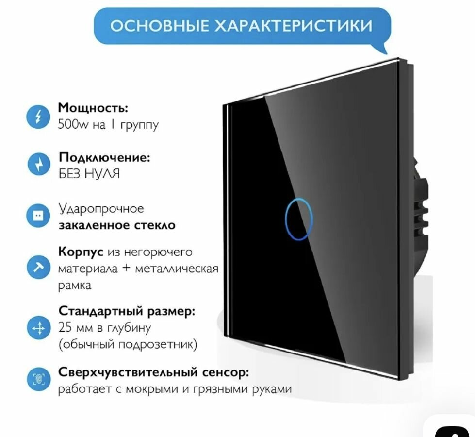 Отзывы на Выключатель сенсорный одинарный, закаленная стеклянная панель, цвет-черный глянец, один пост.