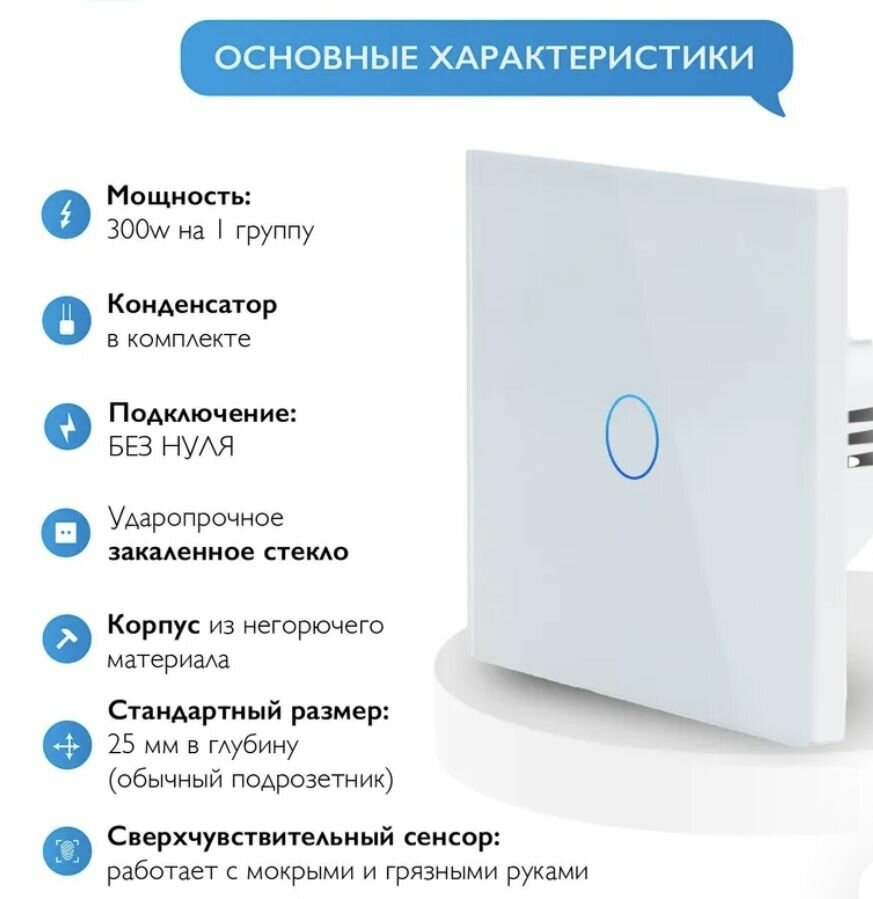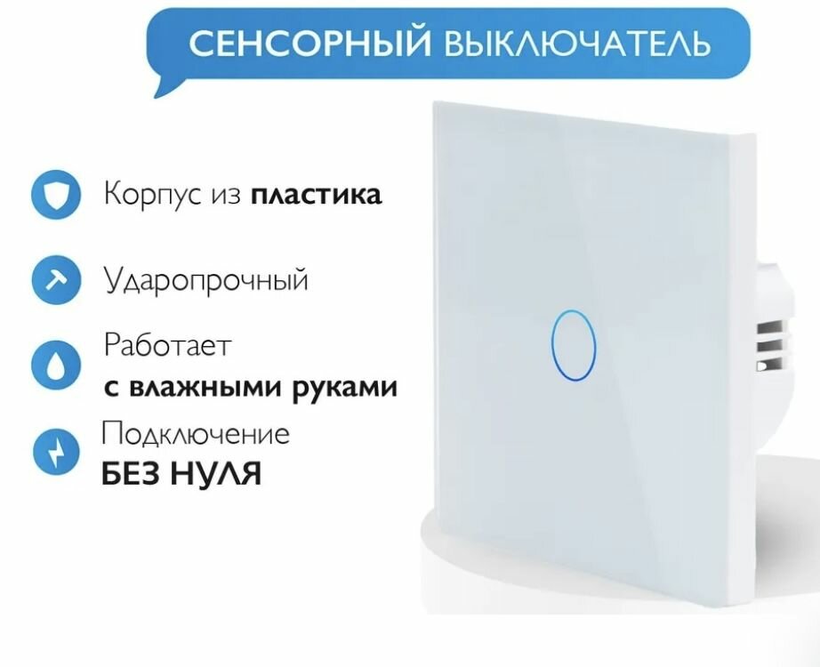 Отзывы на Сенсорный выключатель одноклавишный, стеклянная глянцевая панель, белый, на одну группу