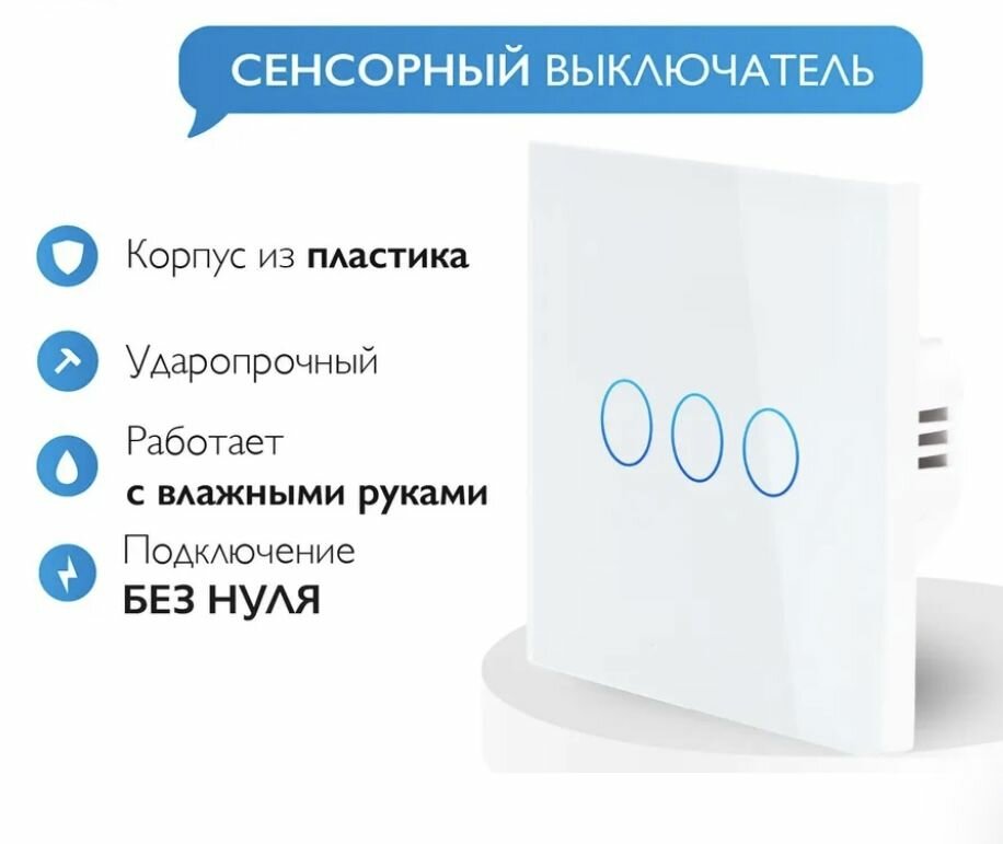 Отзывы на Выключатель сенсорный тройной, стеклянная глянцевая панель, цвет-белый глянец, на три поста.