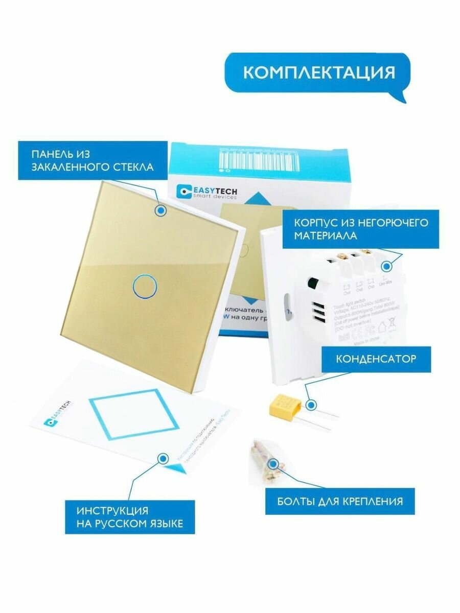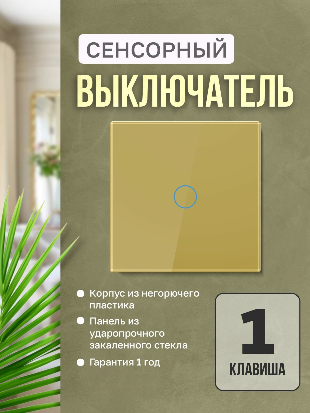 Отзывы на Выключатель сенсорный одинарный, закаленная стеклянная панель, цвет- золотой глянец, один пост.