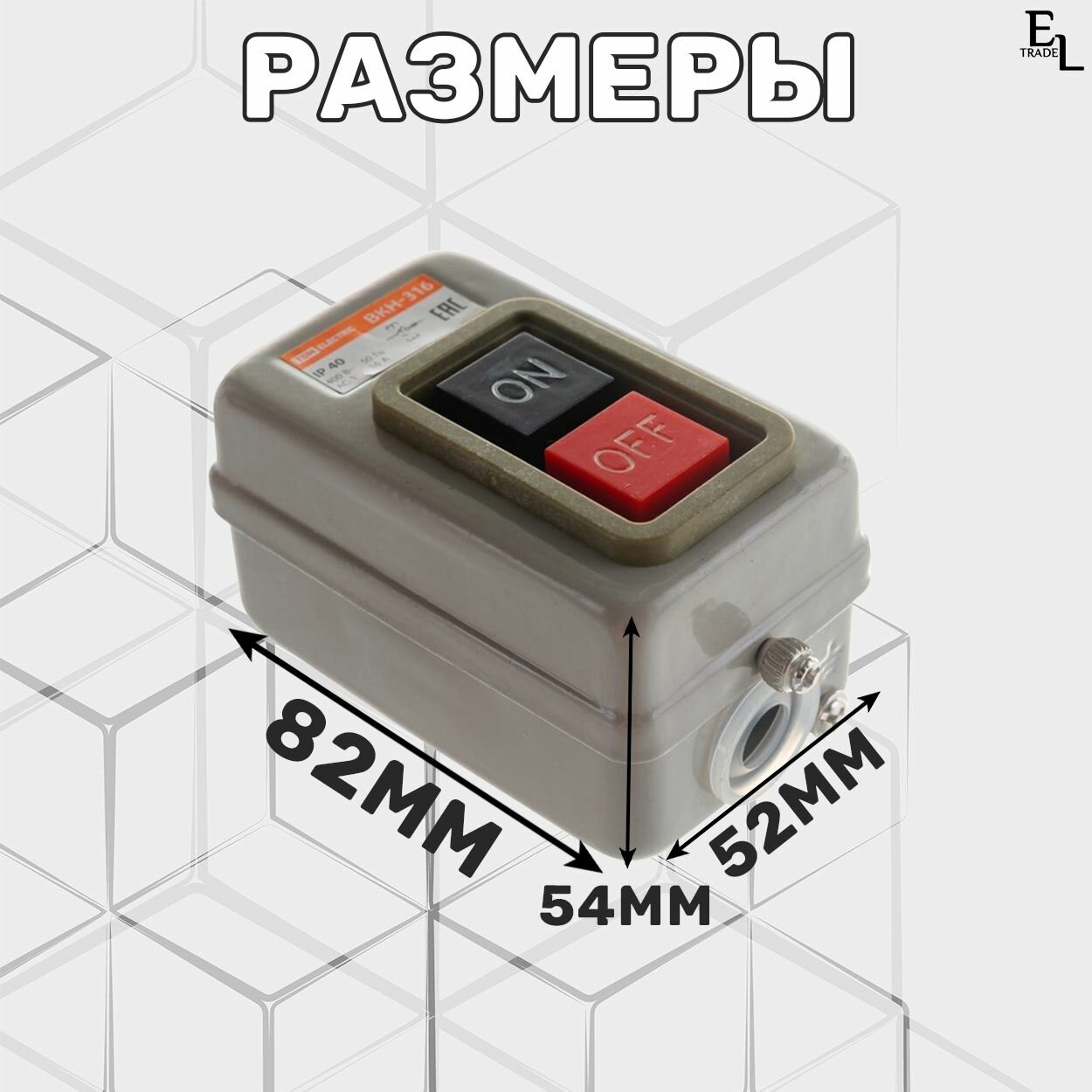 Выключатель кнопочный с блокировкой ВКН-316, 3Р, 16А, 230/400В, IP40, 52х82х54 мм информация: