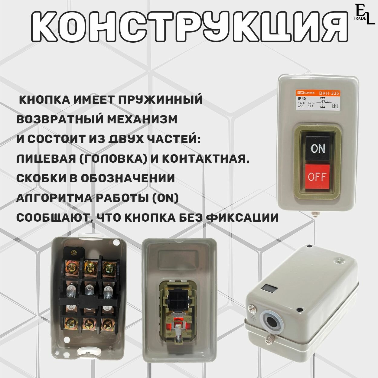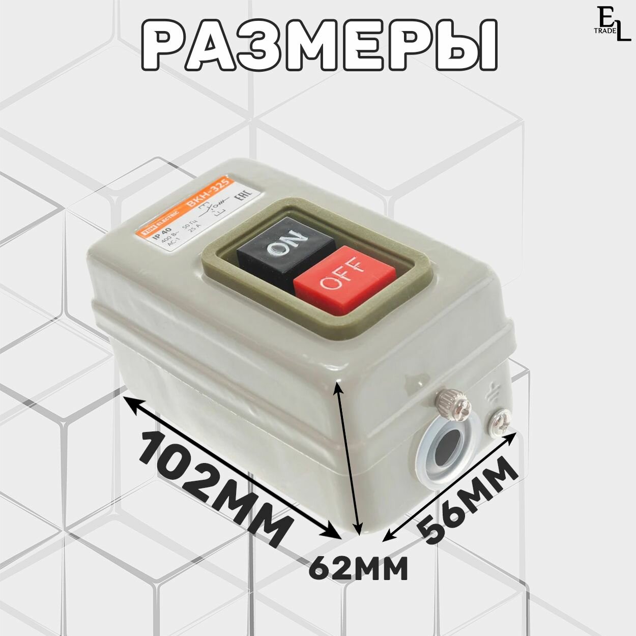 Выключатель кнопочный с блокировкой ВКН-325, 3Р, 25А, 230/400В, IP40, 62х102х56 мм информация: