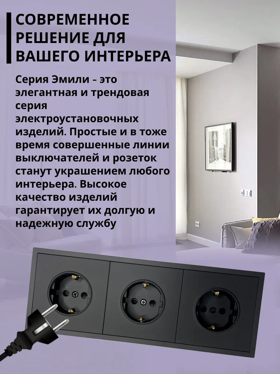 Розетка STEKKER Эмили, встраиваемая, трехместная с заземлением, черная информация: