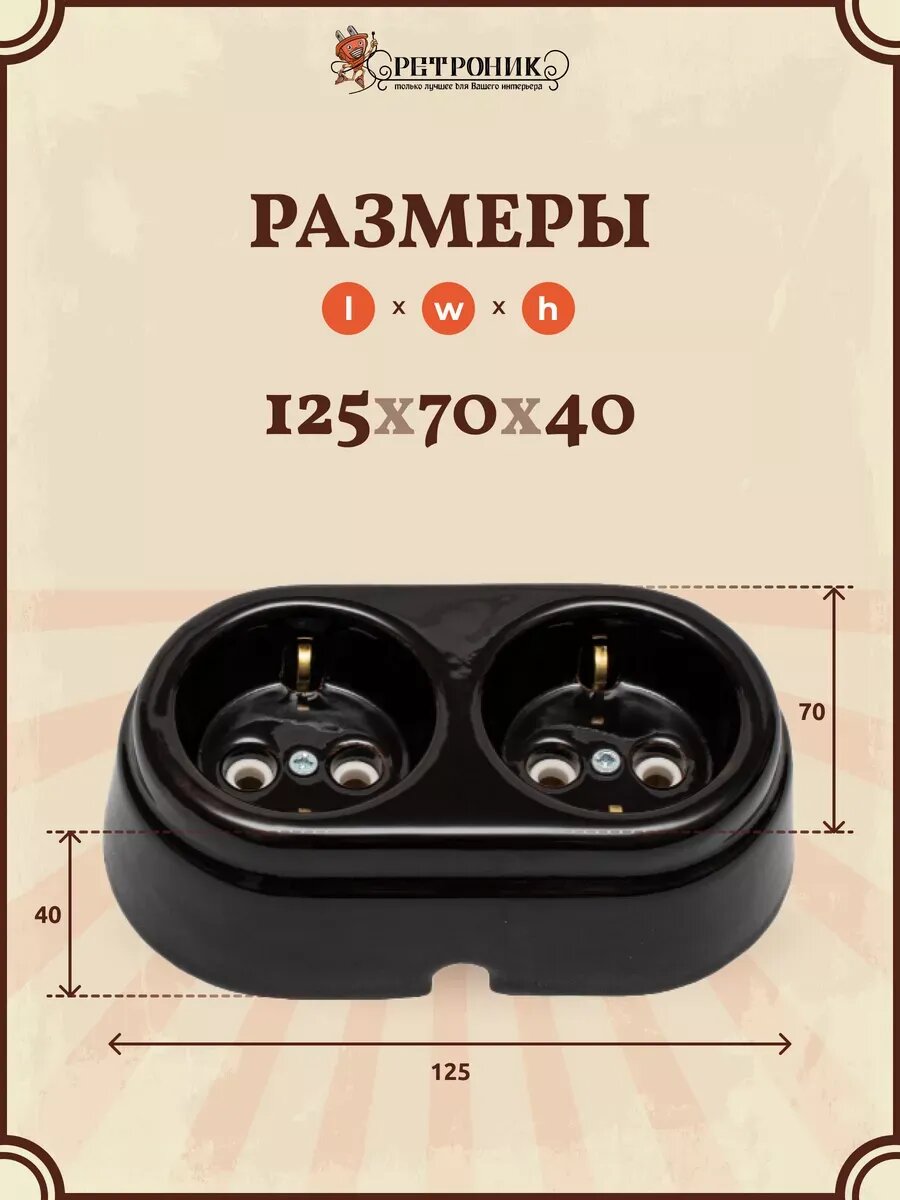 Ретро розетка накладная керамическая шоколадная, 2 шт, Арбат 1 780 ₽