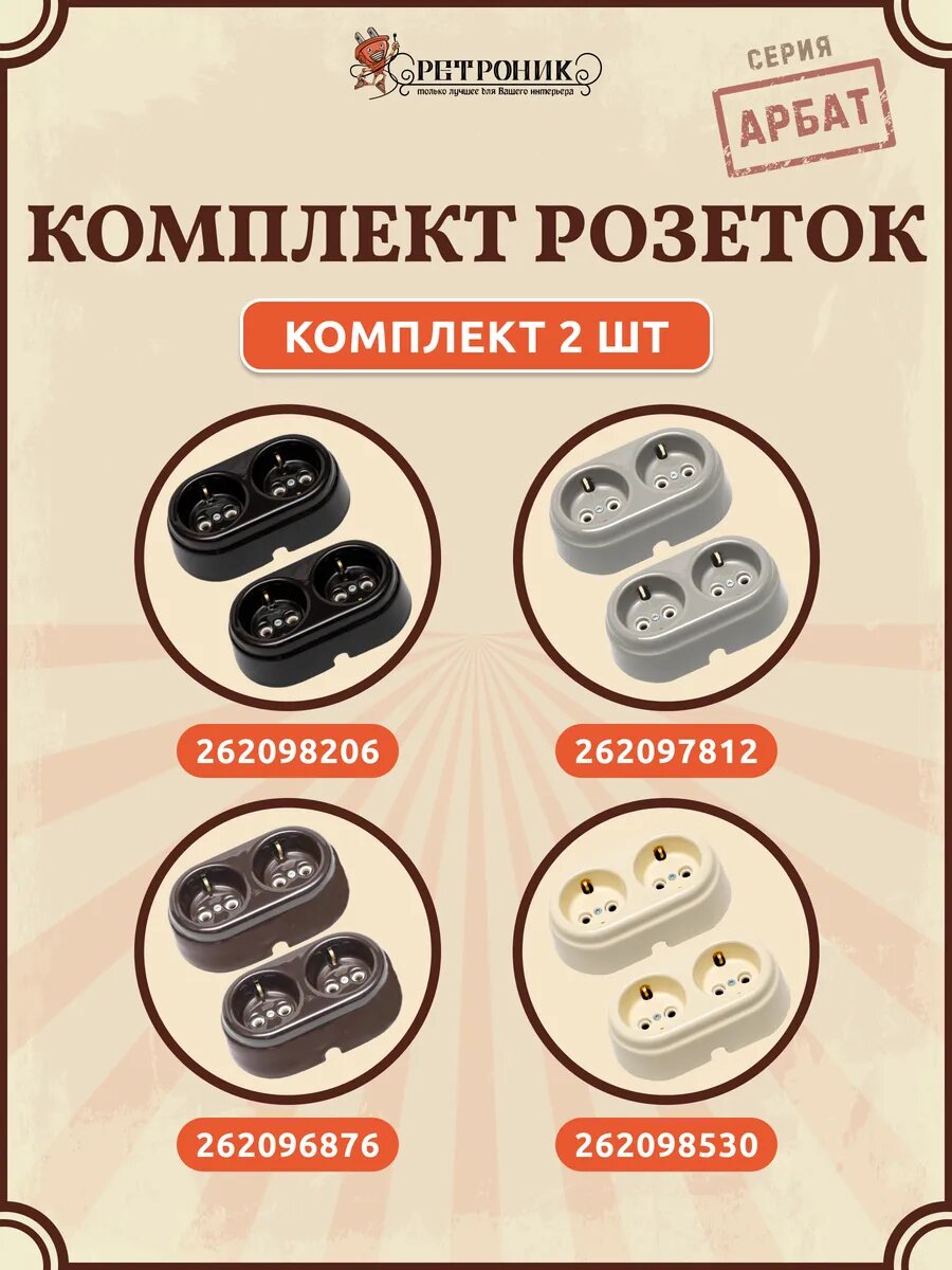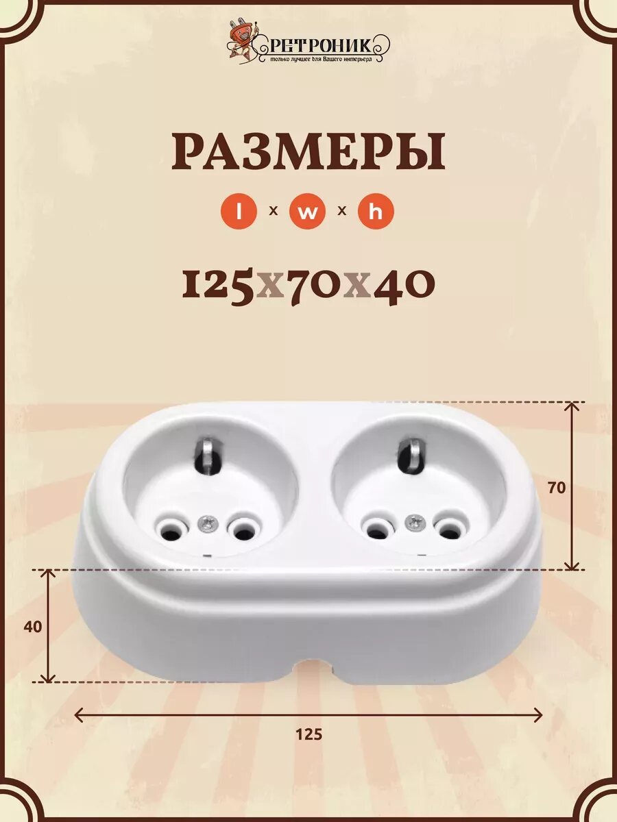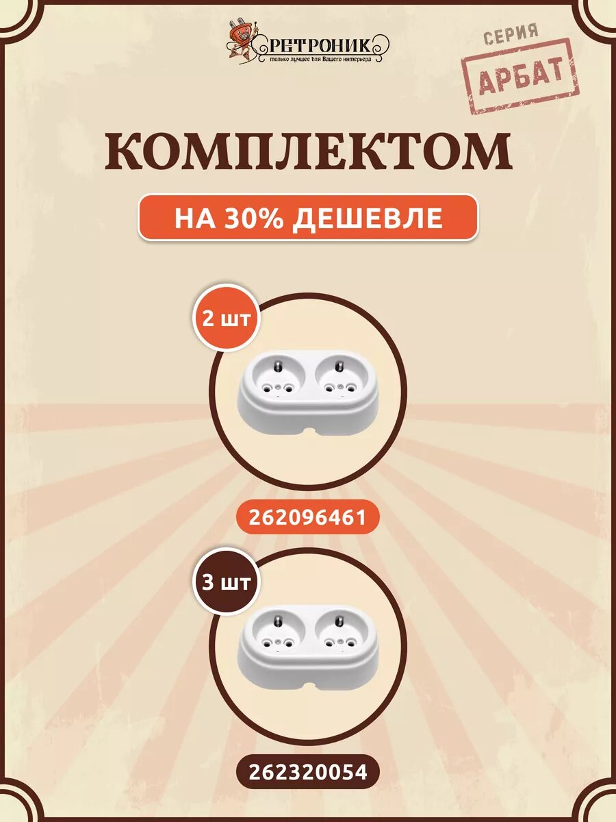 Ретро розетка двойная керамическая, комплект белый 2 шт, Арбат информация: