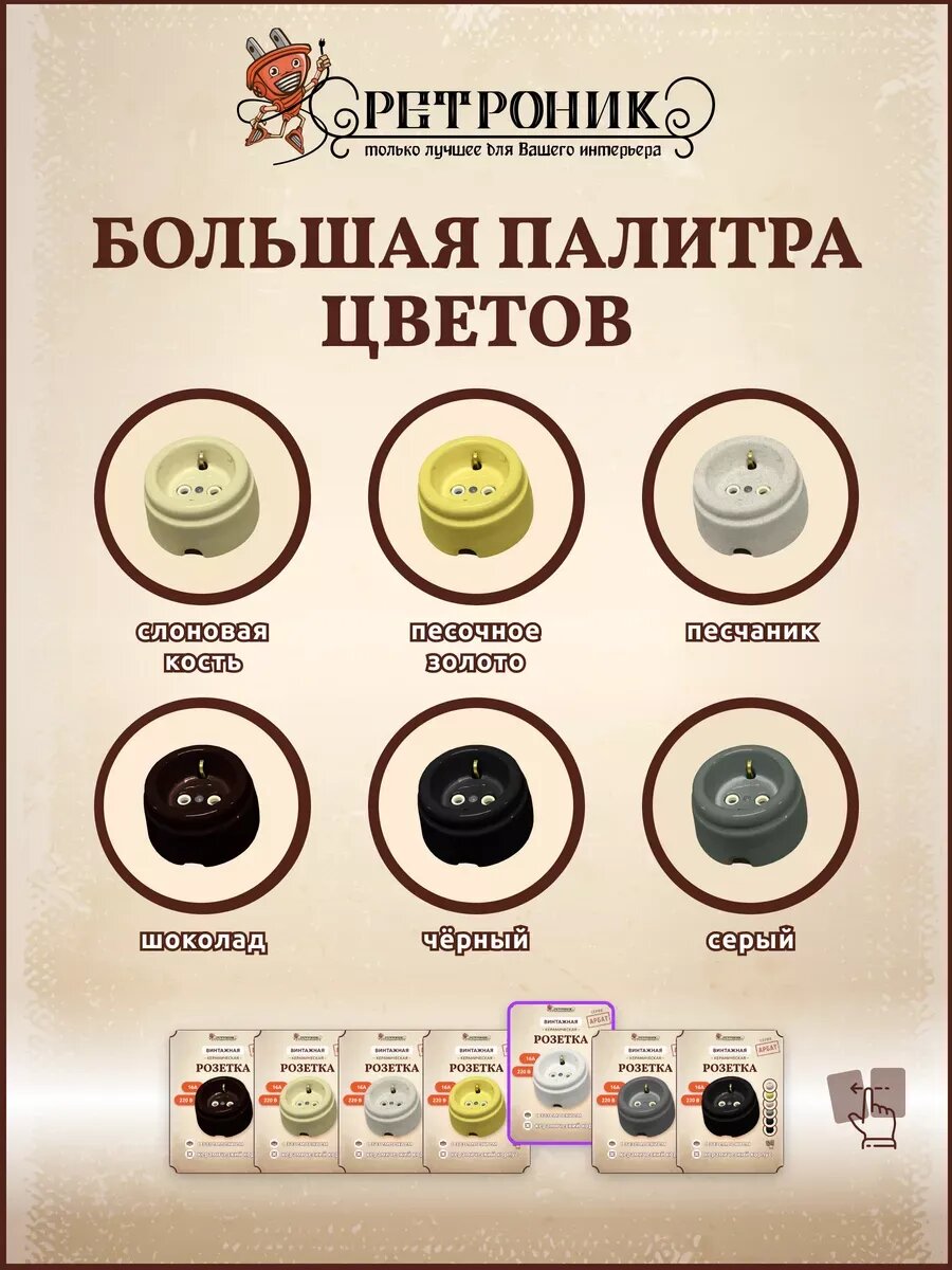 Ретро розетка накладная керамическая серия Арбат комплект 3 шт 2 568 ₽