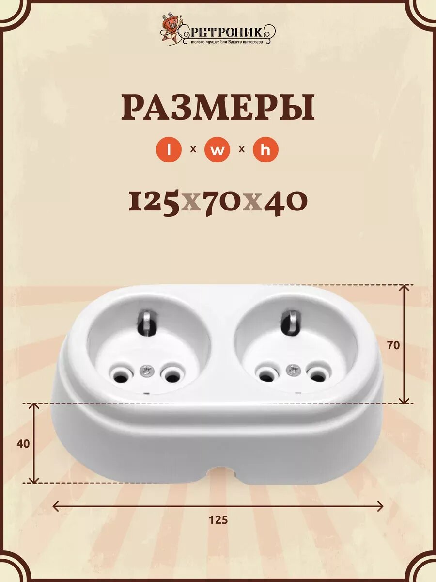 Ретро розетка керамическая двойная белая, комплект 3 шт, Арбат информация: