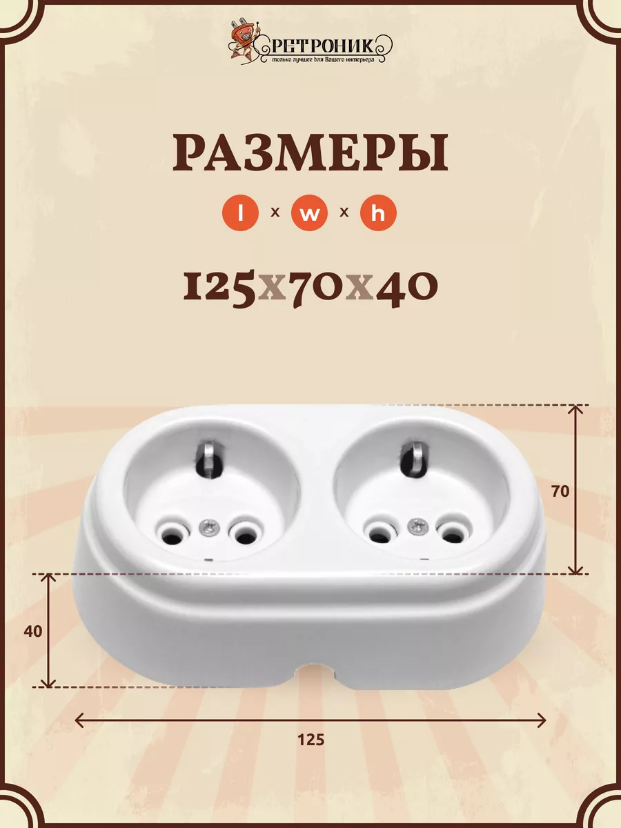 Розетка двойная керамическая ретро Арбат с заземлением Белая, Interior Electric, SCIE/W-01-2 информация:
