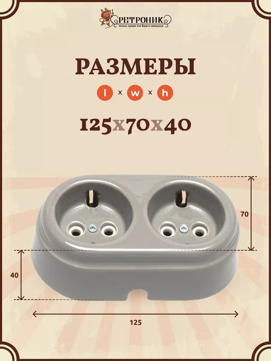 Розетка двойная керамическая ретро накладная серая 2 шт, Арбат информация: