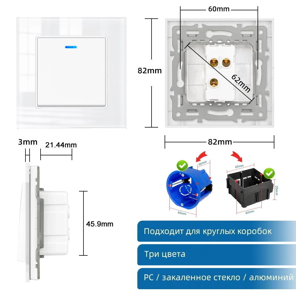10 цен на Выключатель одноклавишный проходной с подсветкой, рамка из закаленного стекла, белый