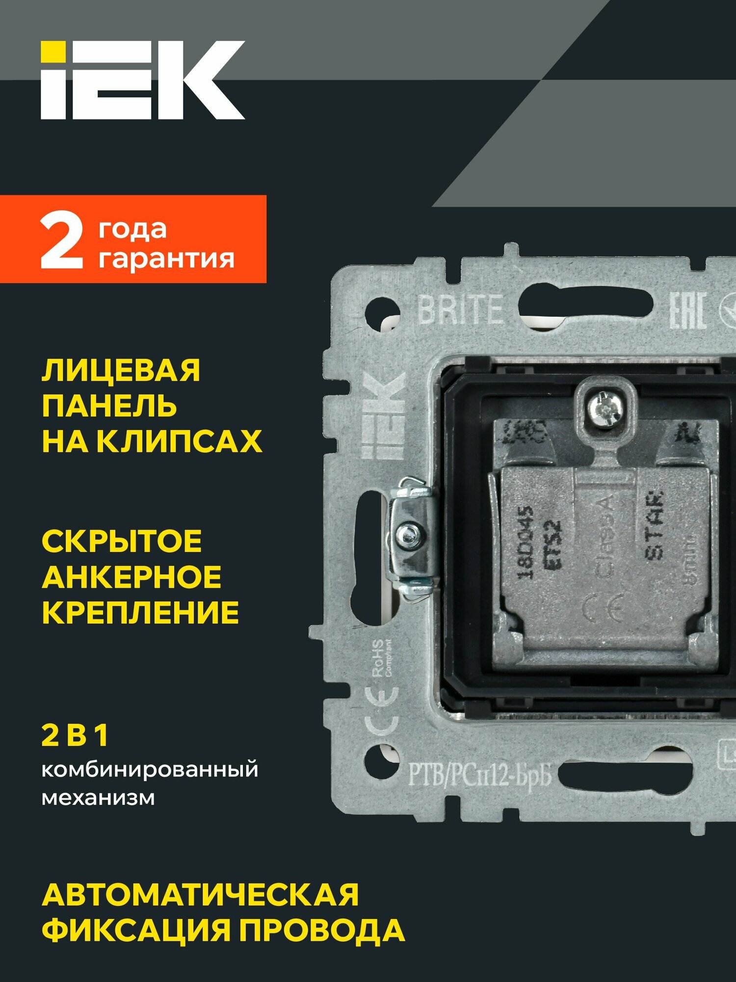 Розетка двойная телевизионная TV+SAT РТВ/РСп12-БрБ белый IEK серия BRITE информация: