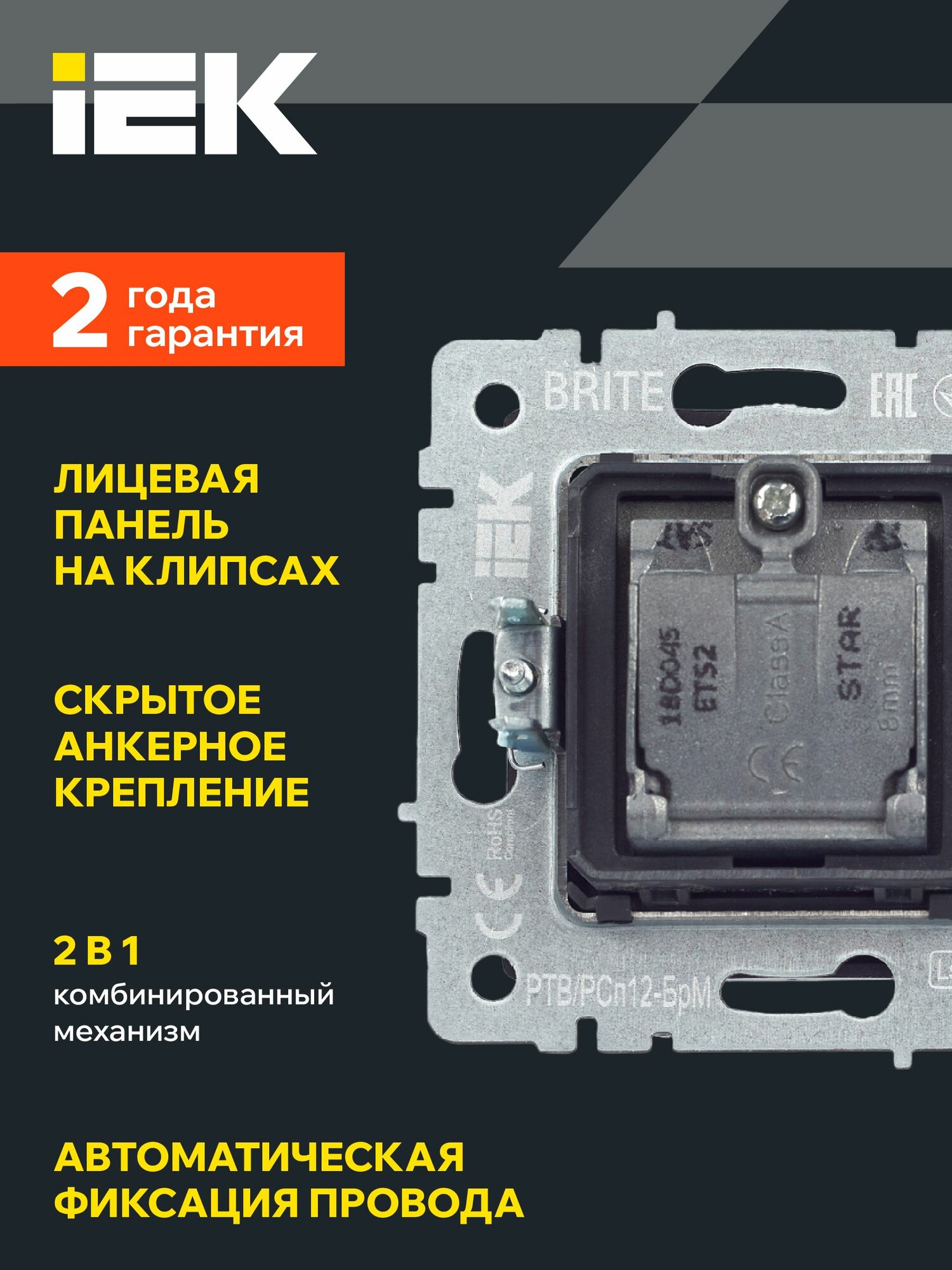 BRITE Розетка двойная телевизионная TV+SAT РТВ/РСп12-БрМ маренго IEK информация: