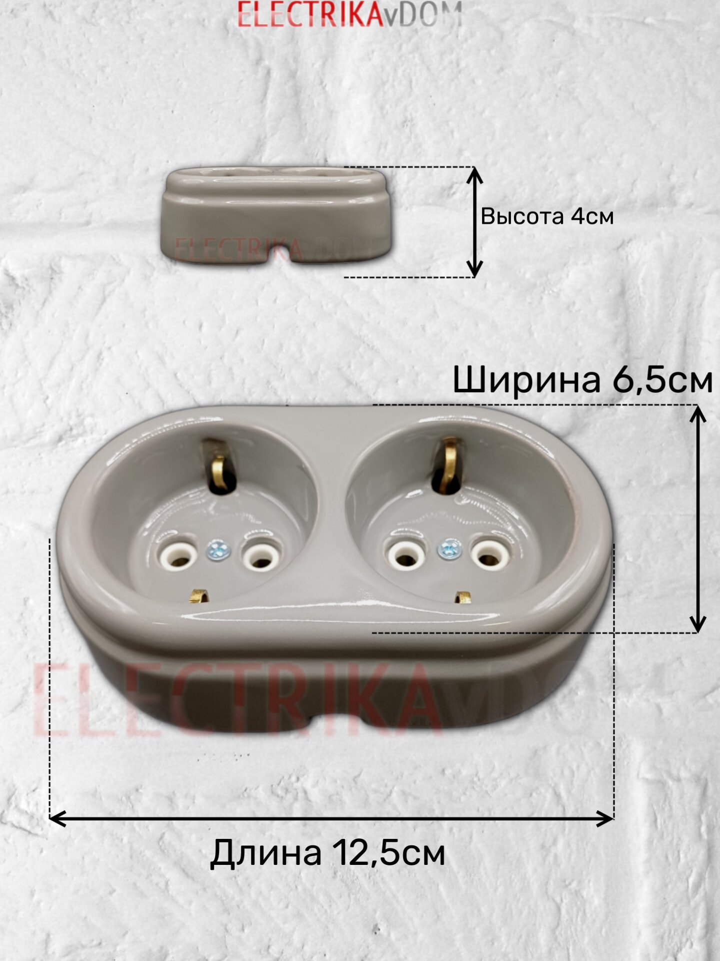 10 цен на IE Ретро розетка двойная с заземлением, керамика, цвет серый