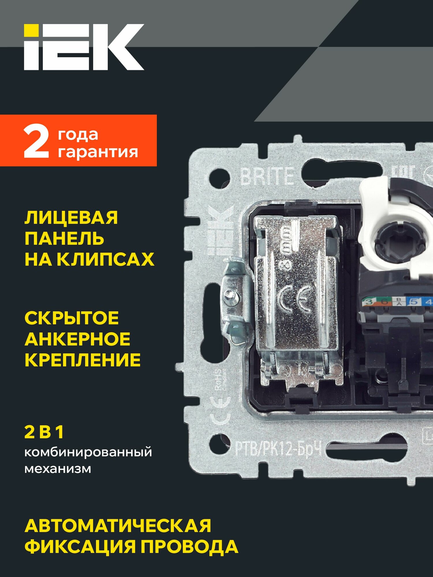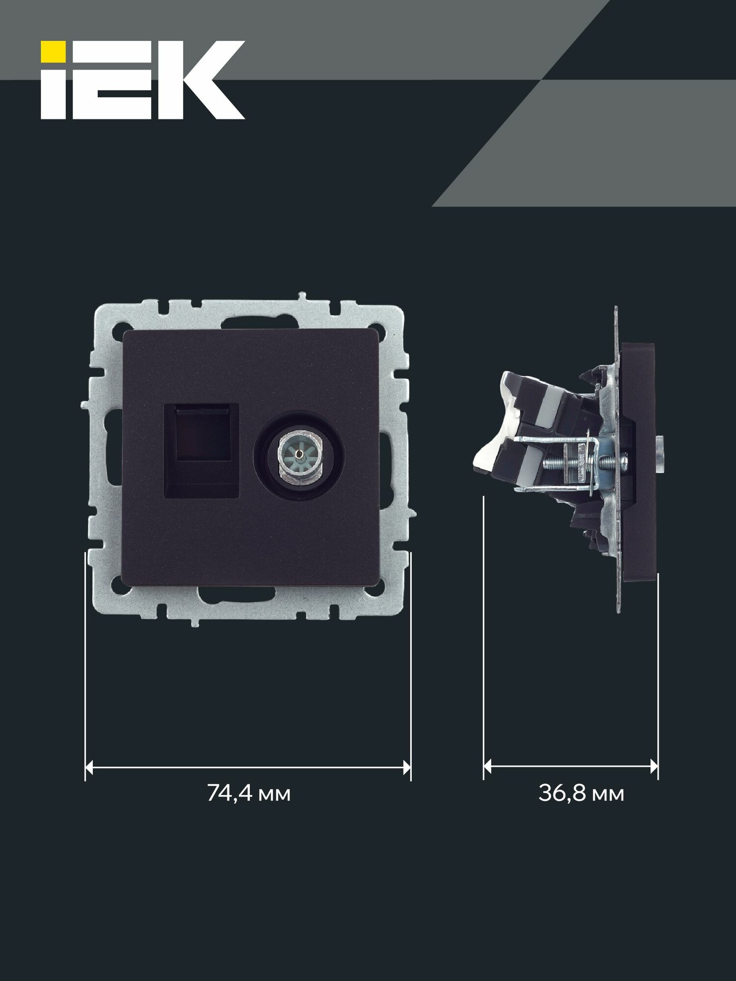 Розетка двойная TV+RJ45 телевизионная и компьютерная кат.5E РТВ/РК12-БрЧ черный IEK серия BRITE информация: