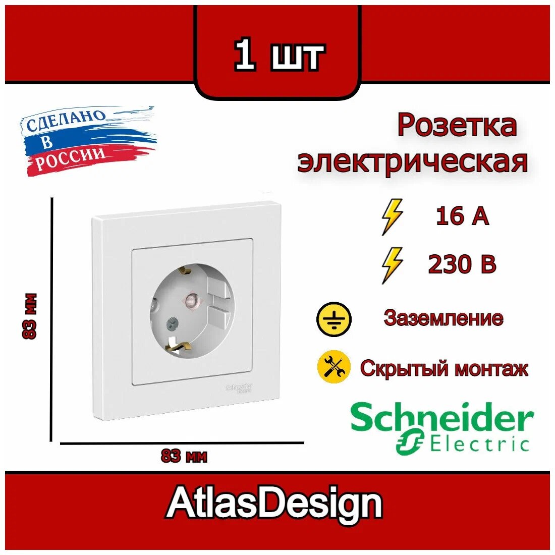 Розетка Schneider Electric "AtlasDesign" SE ATN000140, белая, 1 пост, IP20 информация: